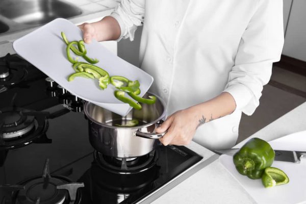 لبه های خمیده در تخته ها موجب می شود. محتویات برش خورده به راحتی به درون ظرف مورد نظر هدایت شود.