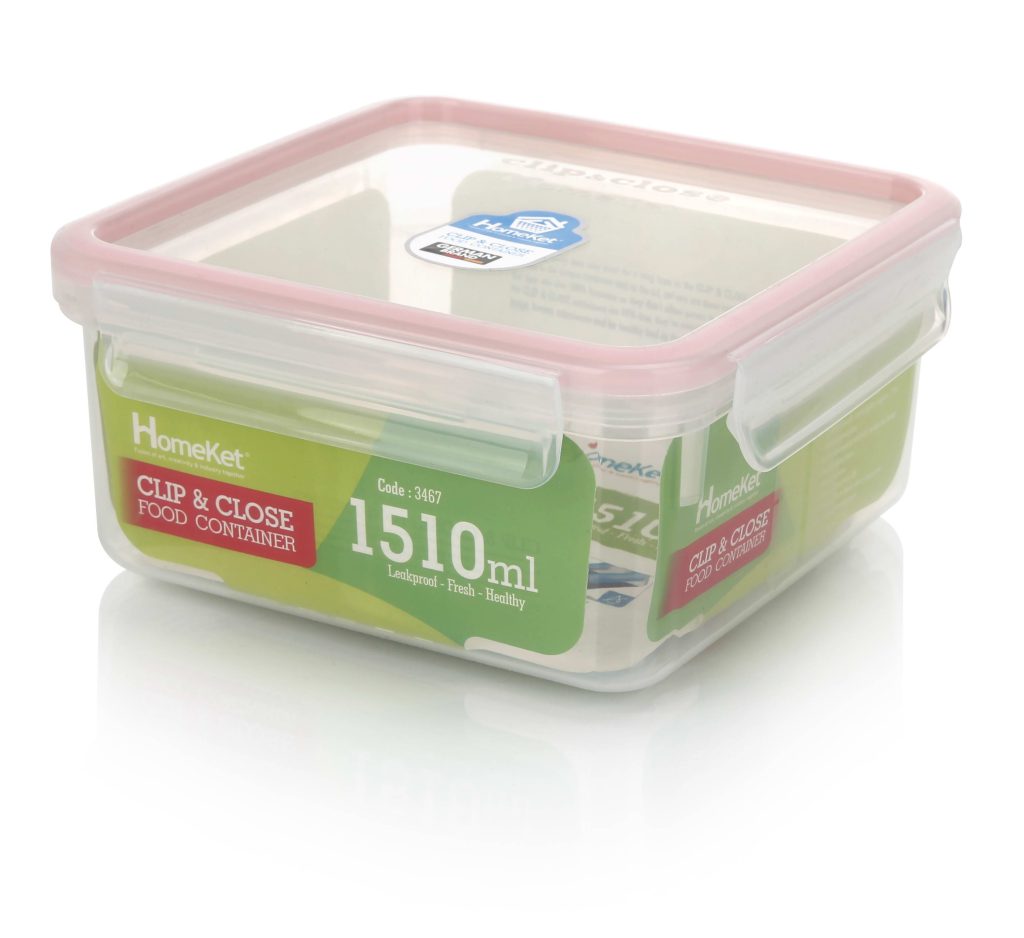 ظرف فریزری مربع 1510 میلی لیتری هوم کت دارای نوار سیلیکون برای جلوگیری از تبادل هوایی. که موجب محافظت مواد غذایی در برابر باکتری های هوازی می شود.