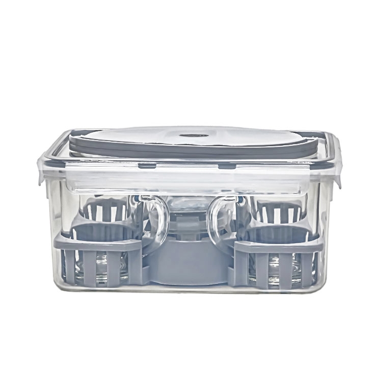 دارای یک باکس به ابعاد 25 ، 18 ، 12 سانتی متر ( به ترتیب طول و عرض و ارتفاع ) بوده . که درون آن 4 عدد لیوان با سایز متوسط و دو ظرف برای قند و پولکی جای میگیرد.
