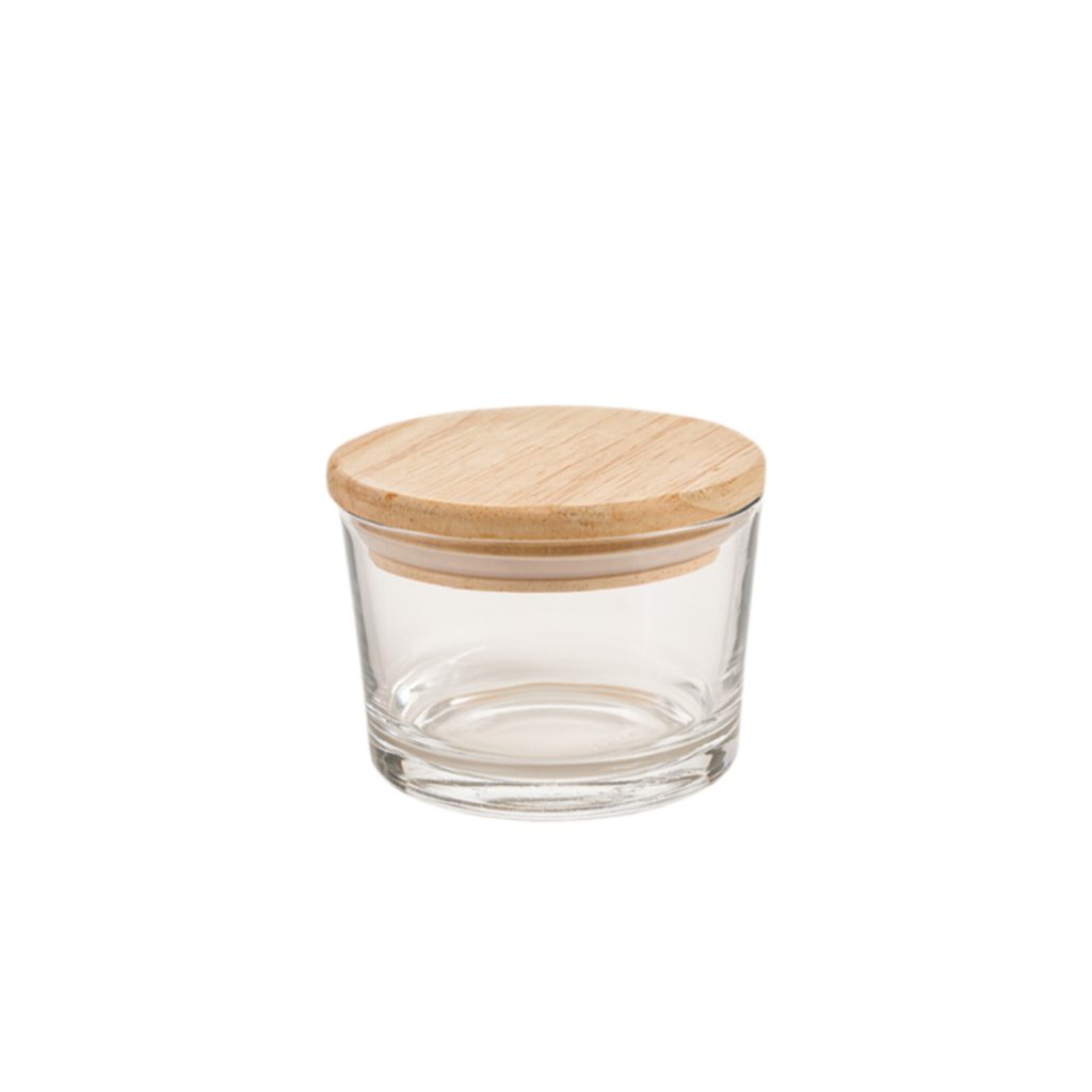 ظرف شیشه ای 190 میل در چوبی لیمون